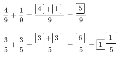 분모가 같으면 분자의 숫자끼리 더합니다.