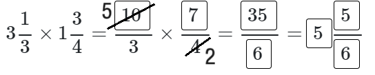 대분수 × 대분수 유형의 경우, 각각 가분수로 바꾼다음, 약분을 하고 분모는 분모끼리 분자는 분자끼리 곱셈을 합니다.
