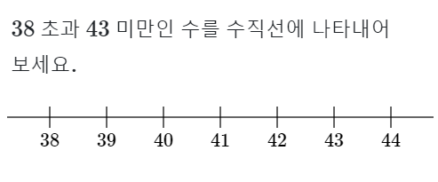 38을 포함하지 않으면 비어있는 동그라미 표시를 하고 43도 포함되지 않으므로 비어있는 동그라미 표시를 합니다.
