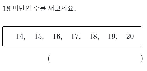 18 미만은 18은 포함하지 않고 18보다 작은 수입니다. 따라서 14, 15, 16, 17 입니ㅏㄷ.