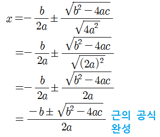 네 맞아요. 위의 식을 써도 되지만 좀 더 정리한다면 더 좋은 근의 공식이 될거에요. 조금 더 정리해볼까요?