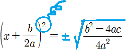 $$a\left(x+\dfrac{b}{2a}\right)^2+c-\dfrac{b^2}{4a}=0$$