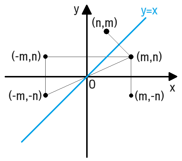 점 $(m,n)$을 $y=x$ 대칭이동하면 $(n,m)$