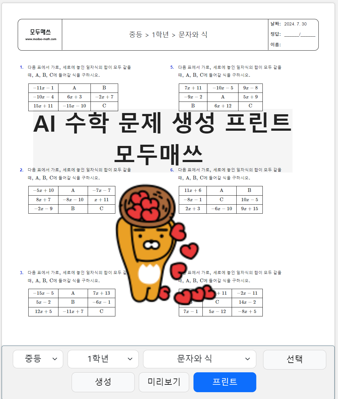 [모두매쓰 생성 연습문제 예시]
