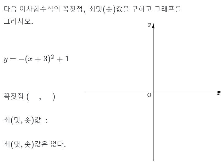 이차함수식을 보고 꼭짓점과 최대값 또는 최솟값을 구하고 그래프를 그리기 연습문제