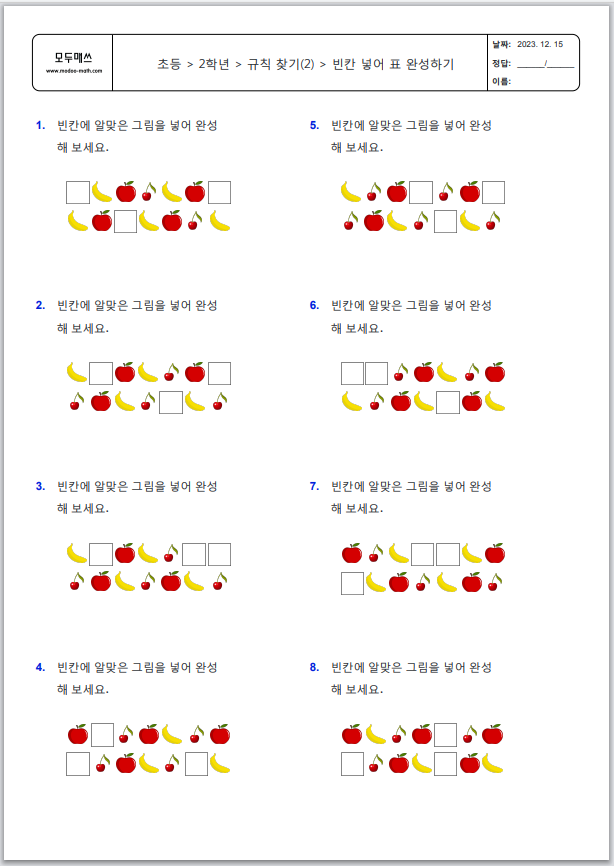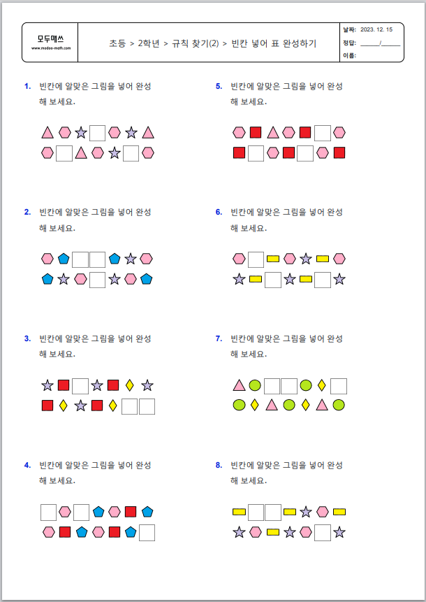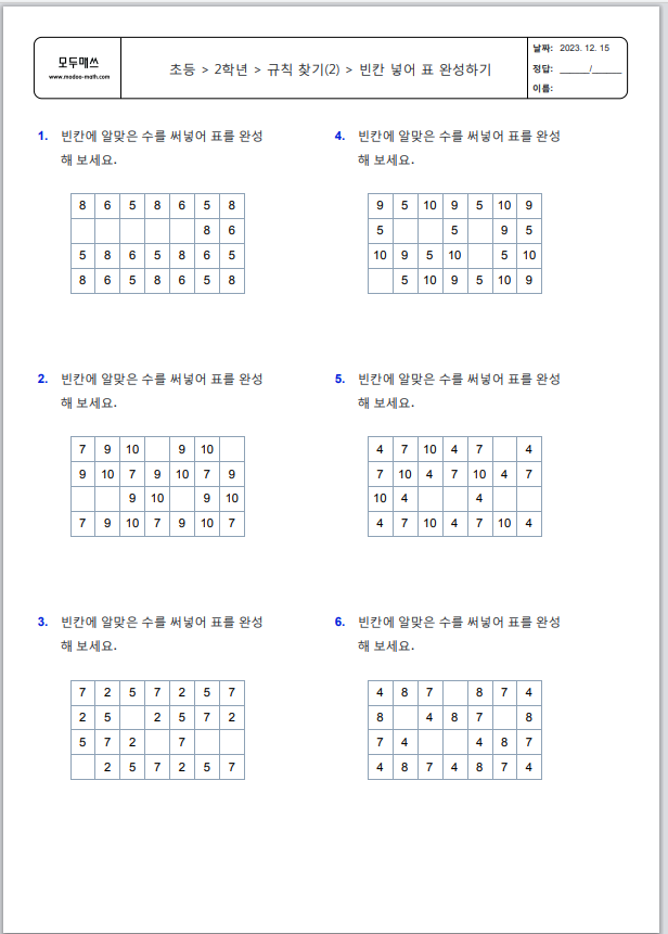 꾸준히 연습할 수 있도록 무제한 생성 사이트 모두매쓰에서 생성한 문제들이에요.