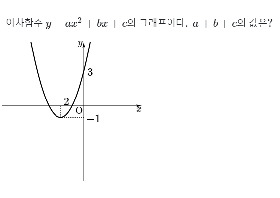 문제에서는 $y=ax^2+bx+c$꼴로 변형하여 $a+b+c$의 값을 구해야하므로 식을 전개해야합니다.
