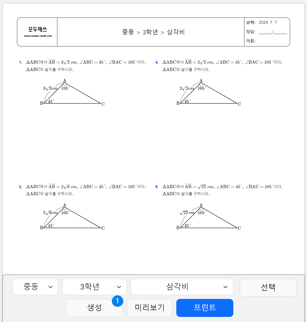 이와 같은 유형의 문제를 직접 만들어서 풀 수 있는 웹사이트 '모두매쓰'를 소개하며 글을 마치도록 하겠습니다.