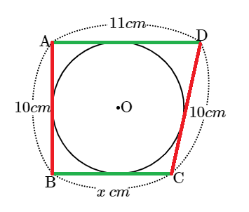 $11+x=10+10$이므로 $x=9cm$입니다.