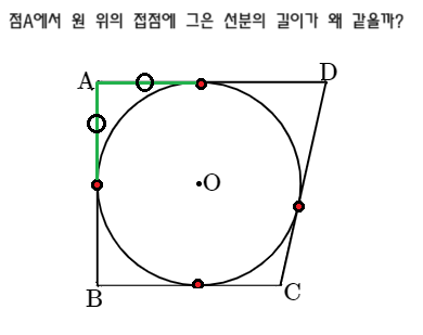 왜 사각형의 각 꼭짓점에서 원 위의 접점까지의 거리가 같은걸까요?