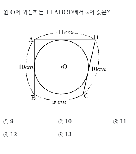 중등 3학년 수학 > 원과 직선 > 사각형에 내접하는 원에서 두 쌍의 대변의 합이 같은 이유, 연습문제 프린트 학습지