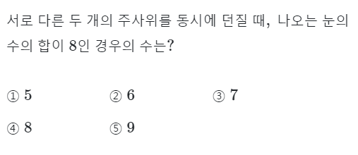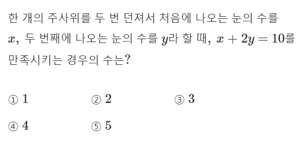 이렇게 하여 주사위를 던져서 나오는 경우의 수에 대한 문제를 풀이하였습니다.
