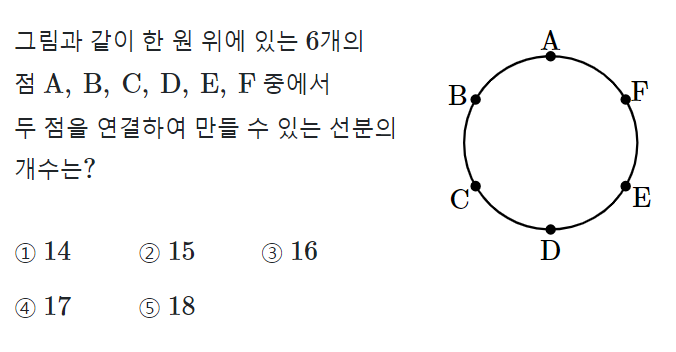 따라서 선분의 총 개수는 마찬가지로 15가지가 되어 정답은 2번입니다.